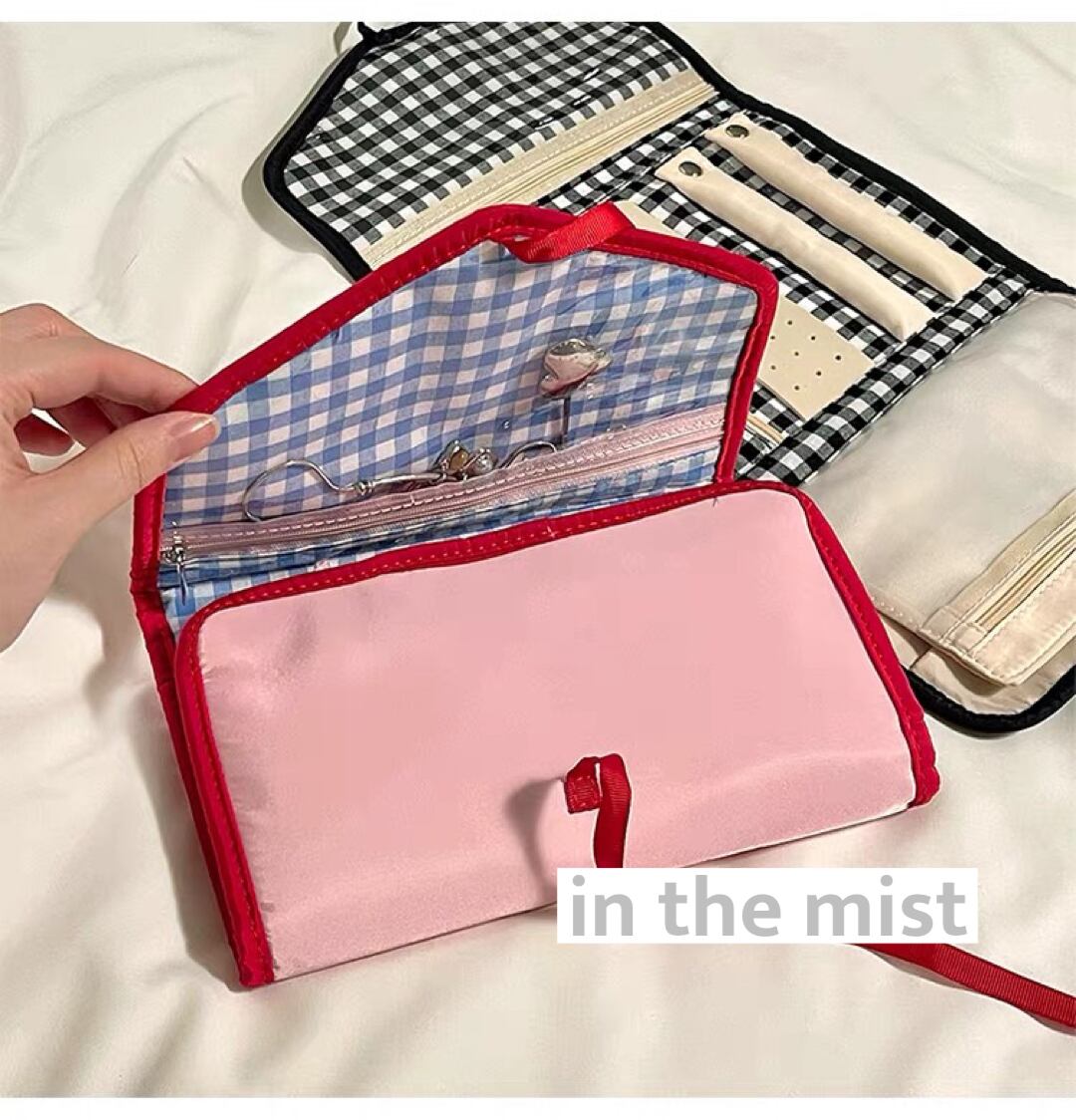 gingham check cosme pouch